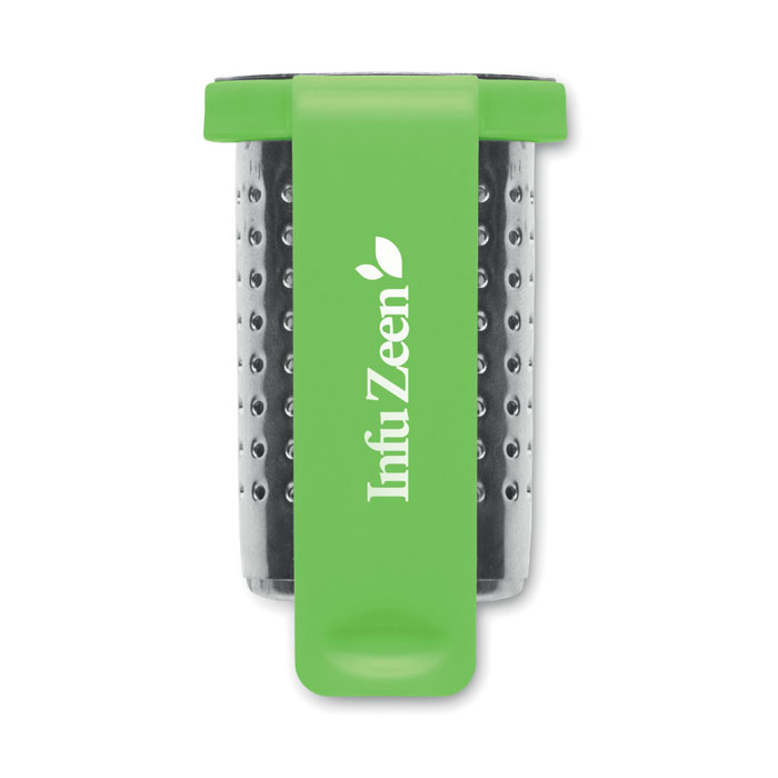 Tea infuser for loose leaf tea in stainless steel with PP hook.
