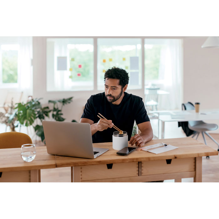 Double wall insulated lunch container made of 90 % recycled stainless steel and 10% stainless steel with PP lid. Capacity: 500 ml.